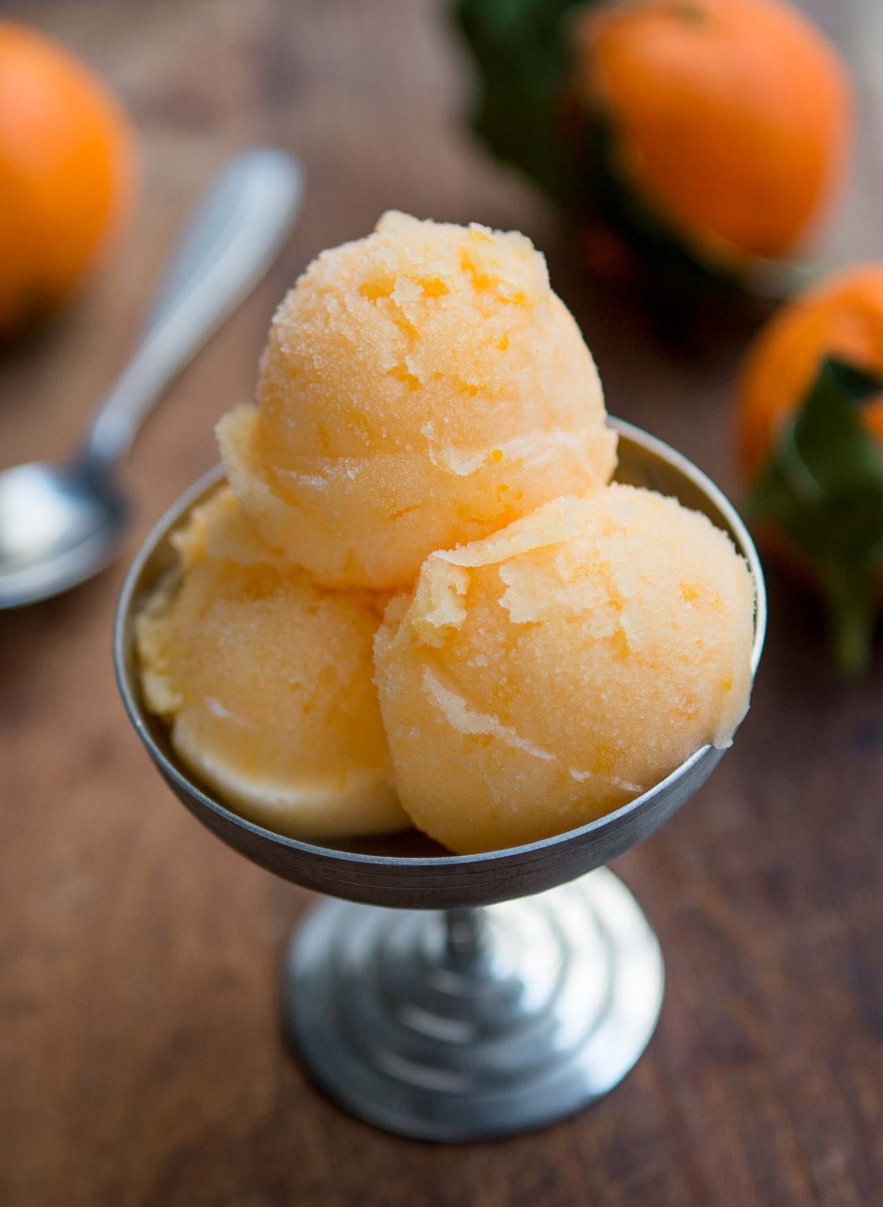 …I am back in commission and ready to eat things full of flavor again. (Everything turned out okay and all is well, for those who were following.) And this ultra-flavorful sorbet fits that bill to a “T”…as in T for tangerines, which I can’t get enough of this time of the year.