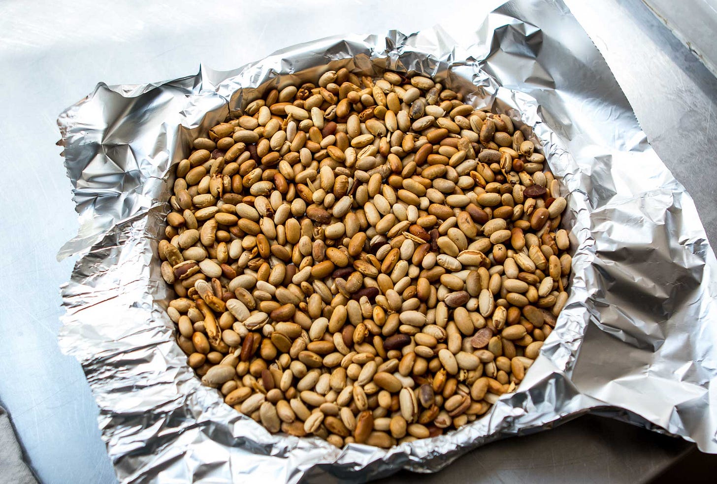 7. To bake the tart shell, preheat the oven to 375ºF (190ºC). Line the tart pan with foil and fill with pie weights or dried beans and bake for 20 minutes. Carefully lift out foil and beans and bake until the bottom of the dough is cooked, but not necessarily over-browned, about 8 to 10 minutes.