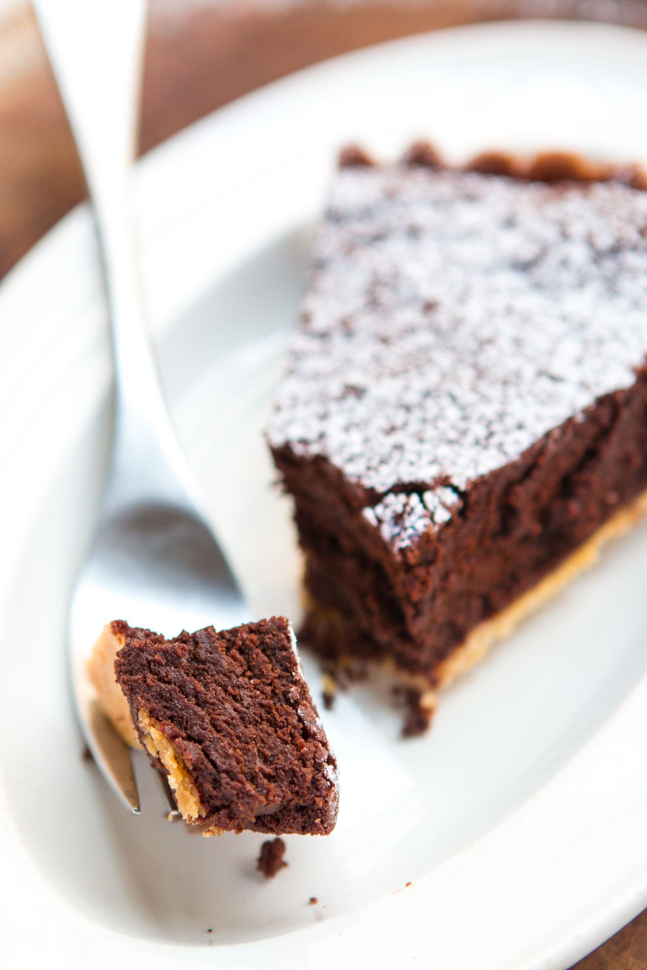 It was just right and absolutely perfect. My only advice is to use very good dark chocolate. On one try, I made it with supermarket dark chocolate, and it was just okay. If you’re going to eat chocolate, make it a good one, and while you don’t need to use the best, most-expensive chocolate, considering they sell a similar tart for €36/slice, this is a pretty good deal.
