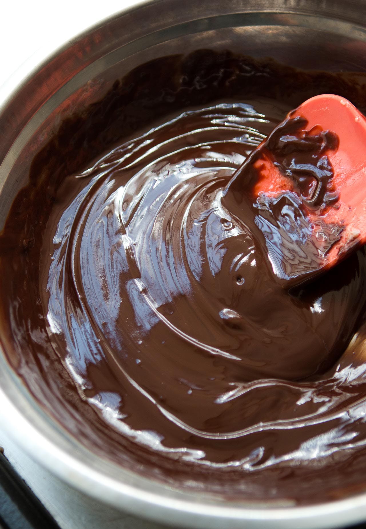 In one of my tests, I used supermarket dark chocolate, which was the worst of them all. So do your best to get a good dark chocolate—Lindt (easily available, and not super expensive) will do just fine. Here I used a 72% Cacao Barry from Venezuela, which I bought some in bulk, but I think something in the 65-75% range would fill in nicely. I don’t like to call for brands too much since they vary, and not everyone has the same access or budget, but good brands are Cacao Barry, Callebaut, Valrhona, and Guittard. Less expensive and perhaps more readily available are Trader Joe’s 72% dark chocolate Belgian block and Green & Blacks chocolate, among others. Don’t use chocolate chips as most are designed to resist melting.