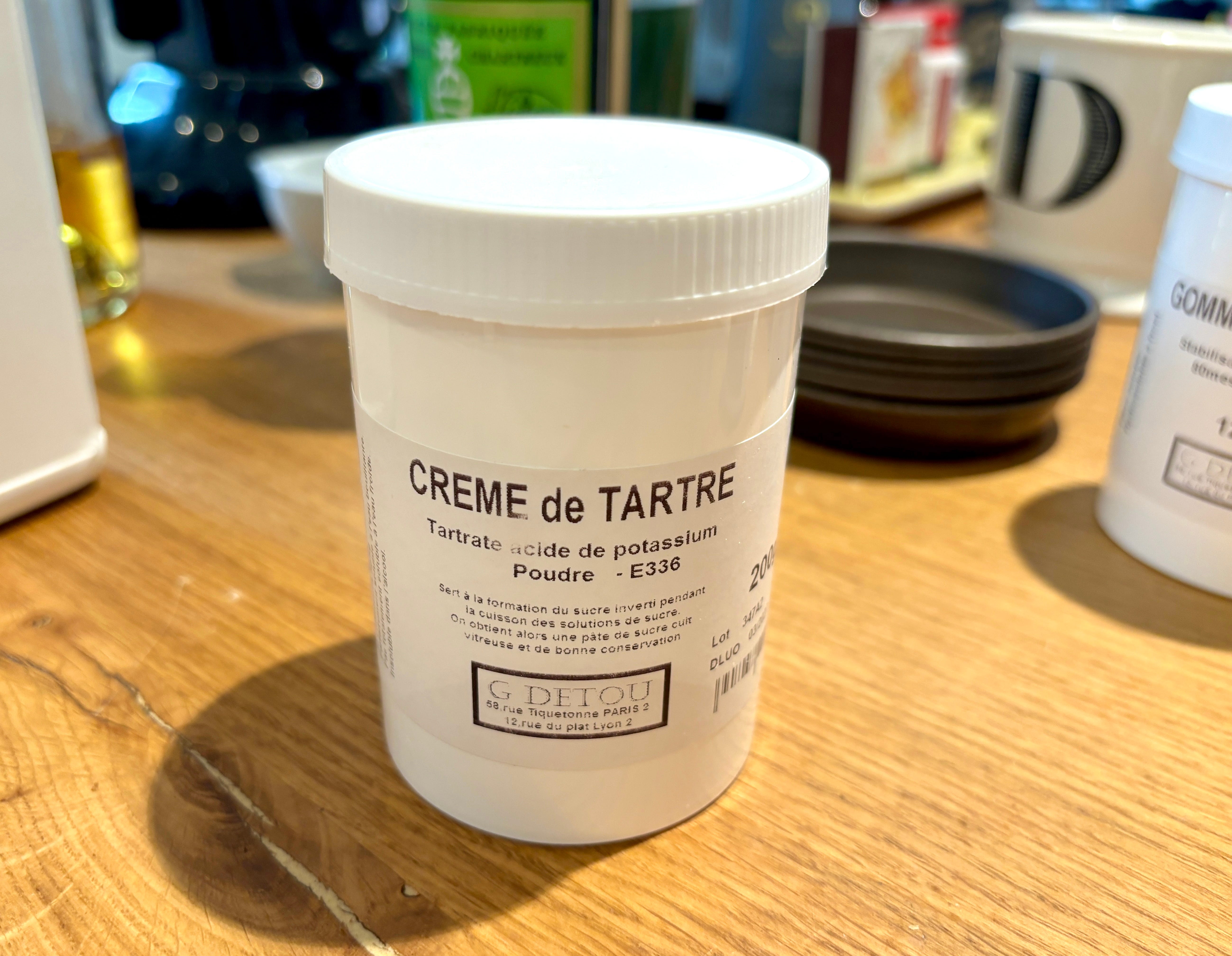Cream of tartar is a stabilizing agent for egg whites. Usually, I make it optional, but here it’s important. (America’s Test Kitchen tested aquafaba with and without it, and their results clearly showed what a good idea it is to use it.) Cream of tartar is common to find in the U.S., in the baking or spice aisle, but outside of the U.S., it may be trickier to track down. G. Detou and In Good We Trust in Paris carry it, and you can find “crème de tartre” online in France and the rest of the world.