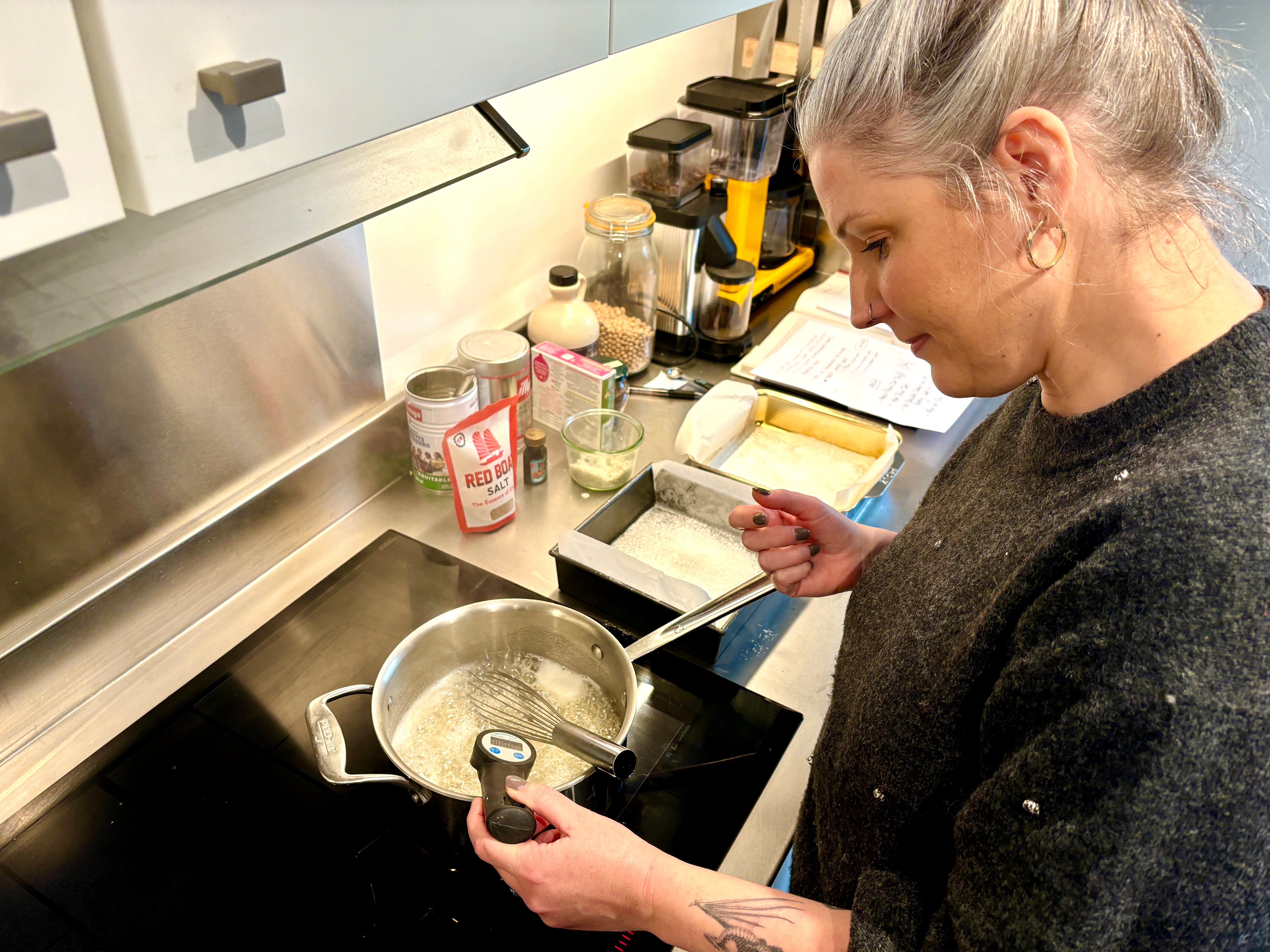One thing fun about baking is that there’s so much to learn. And another is that bakers (including Amanda) are fun people. So going for the win/win, I invited Amanda over to make another batch with me.