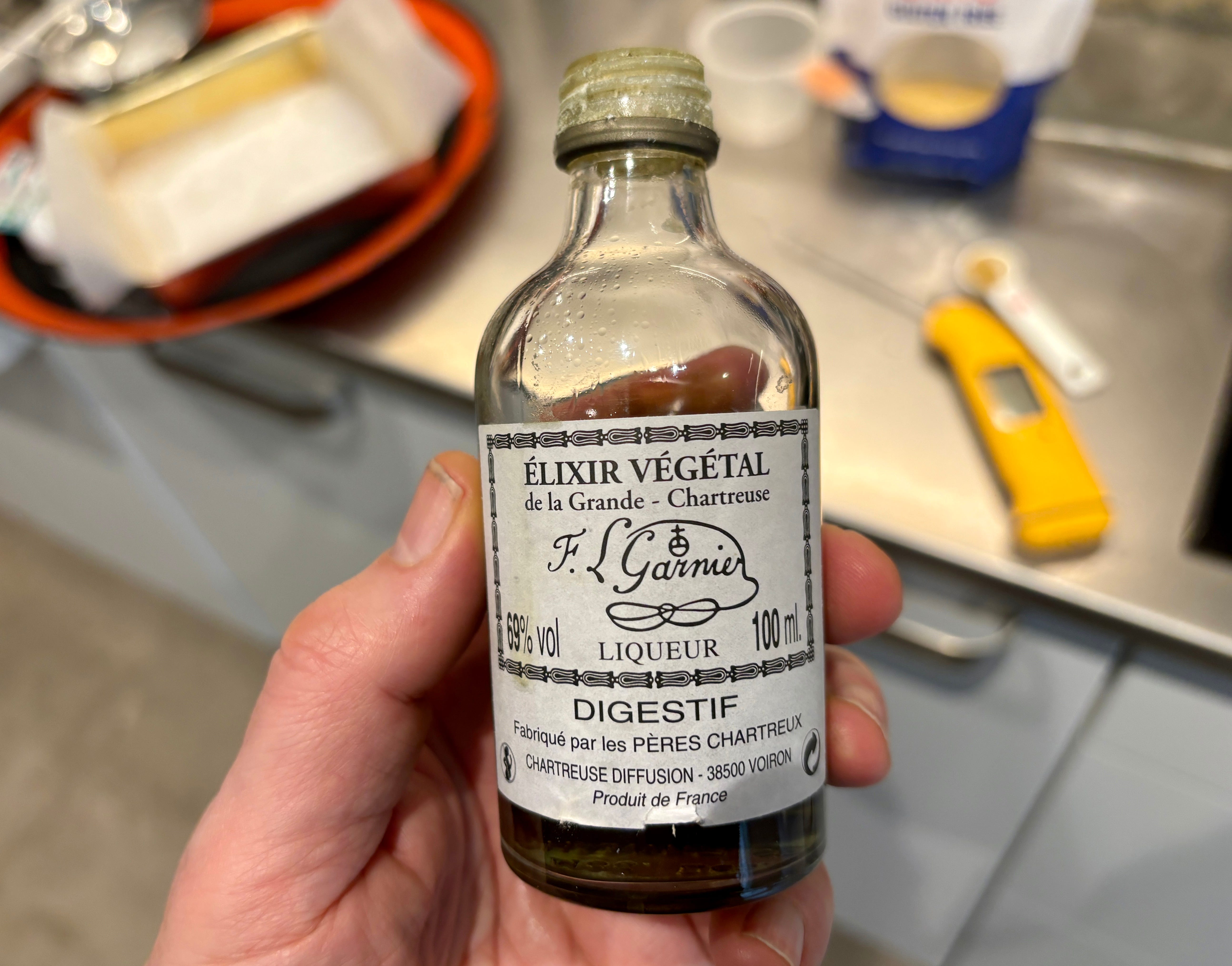 Because I’m sort of crazy for Chartreuse, I added a tablespoon of Chartreuse Elixir, a concentrated form of Chartreuse that’s still made from the original recipe, from 1764, which was originally taken as a remedy for what ails you. It’s now available in the U.S. (despite the current scarcity of the traditional liquor), but you can use regular green Chartreuse or another liquor in them. Or, you can make them for the kids and go with vanilla.