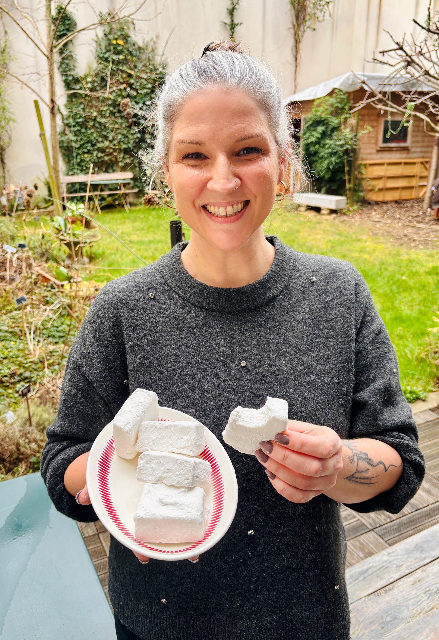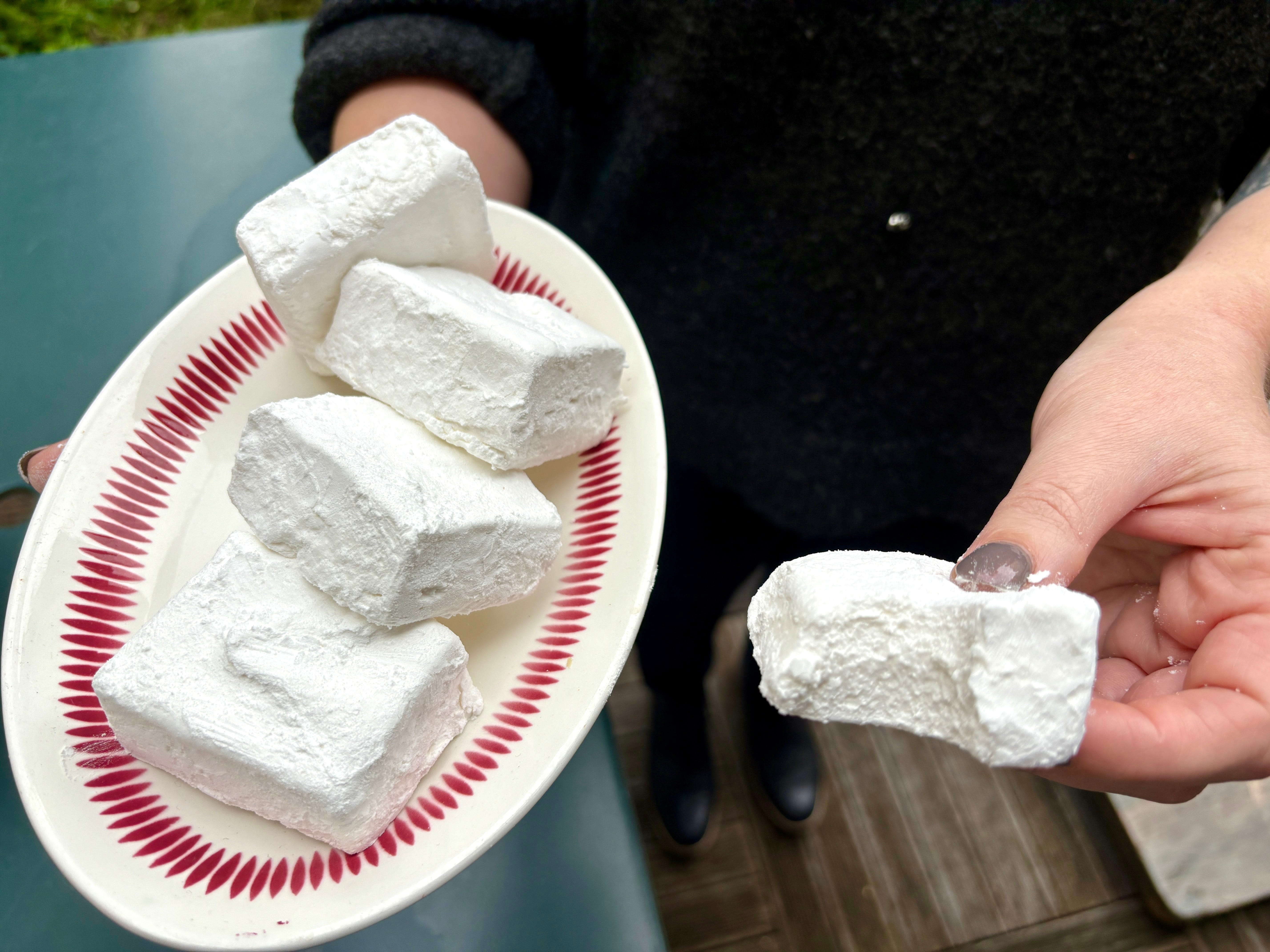 Since we’re being honest, I think I prefer the vegan marshmallows to the egg white–based ones, although I have so many egg whites, I’m not ready to go completely vegan yet. But Romain has been wolfing these down, and I’m not sure if it’s the Chartreuse or the marshmallows. But after making five batches of marshmallows in the last 10 days, I’m happy to have someone around to eat them.