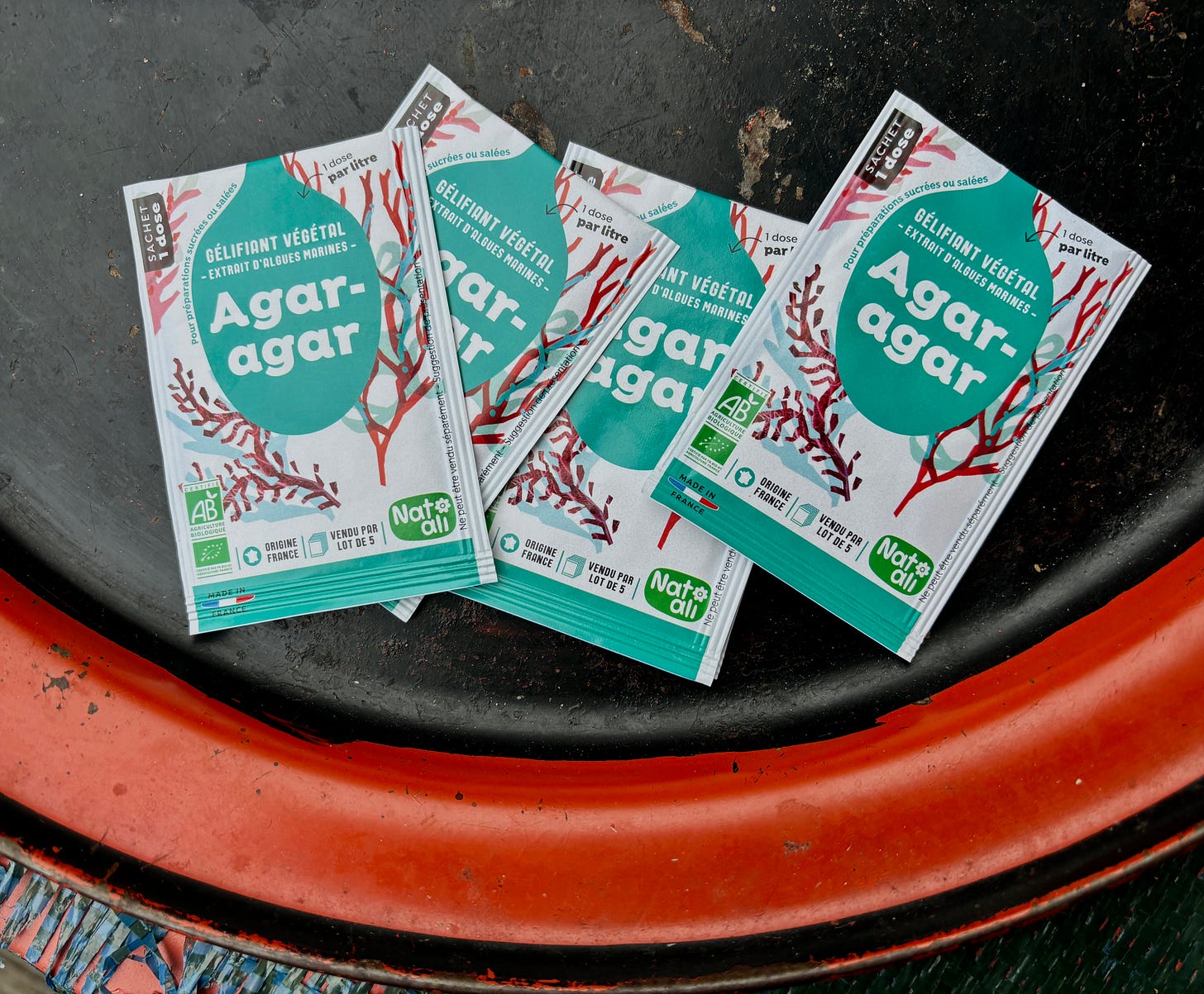 I was surprised and delighted to see agar-agar sold in many supermarkets in France, as well as at natural food stores. I did find Xanthan gum in the cosmetics department at Biocoop, but G. Detou also carries it. If you live elsewhere, if you can’t find the ingredients near you, you can also find them online.