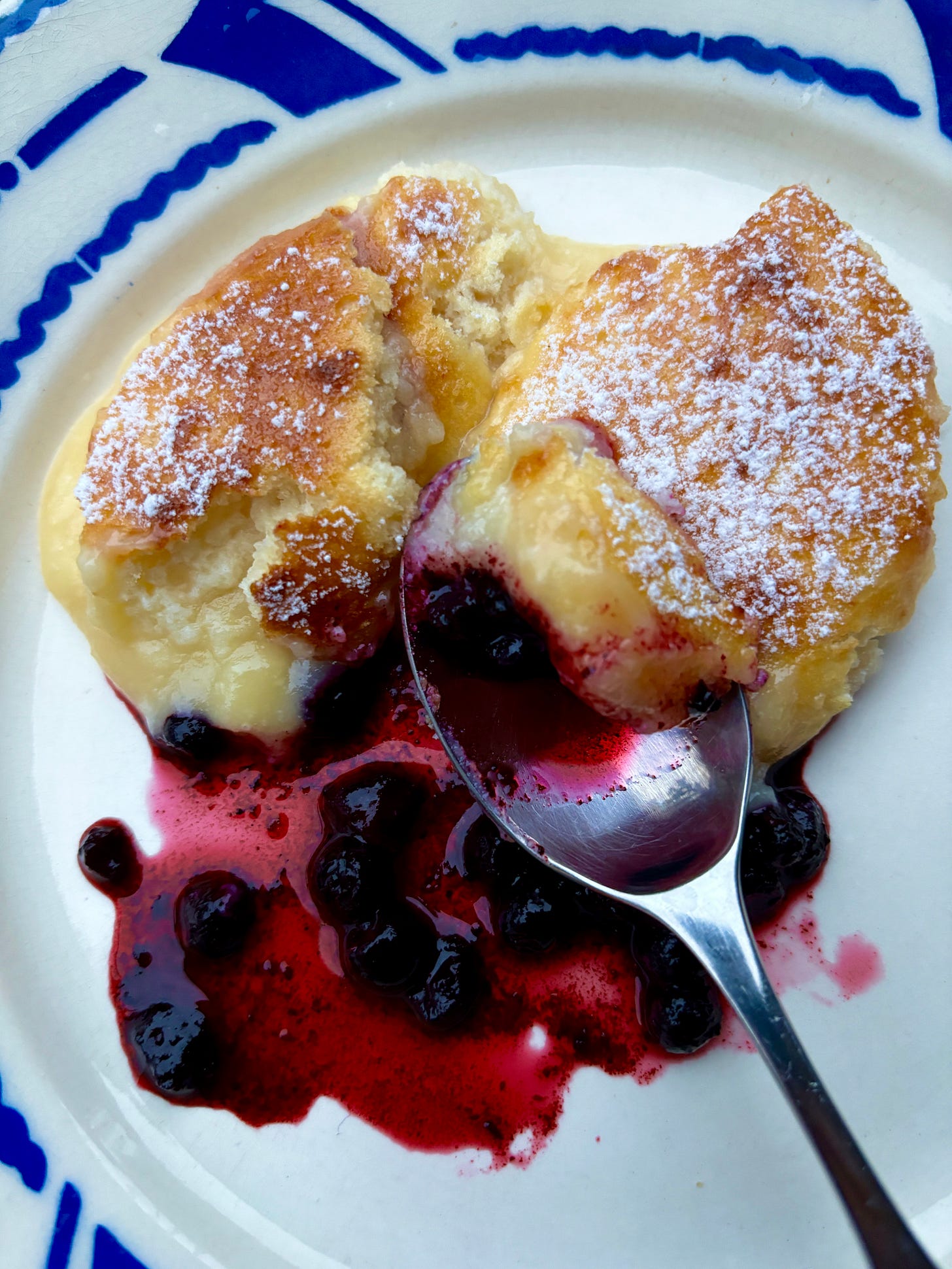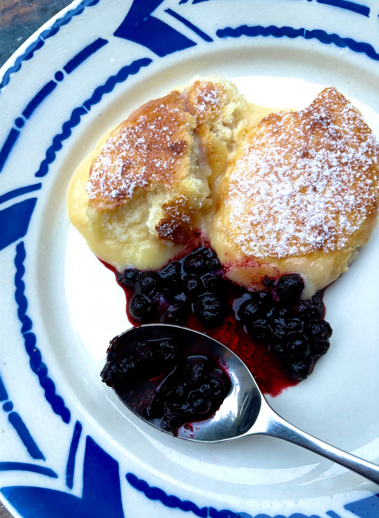 Serving: I served this with wild blueberries (that were frozen), which I cooked with a sprinkle of sugar and a little squeeze of lemon juice in a small covered saucepan until the berries were warmed through and the juices were syrupy. If you cook them a day or two in advance, the juices will thicken even further.